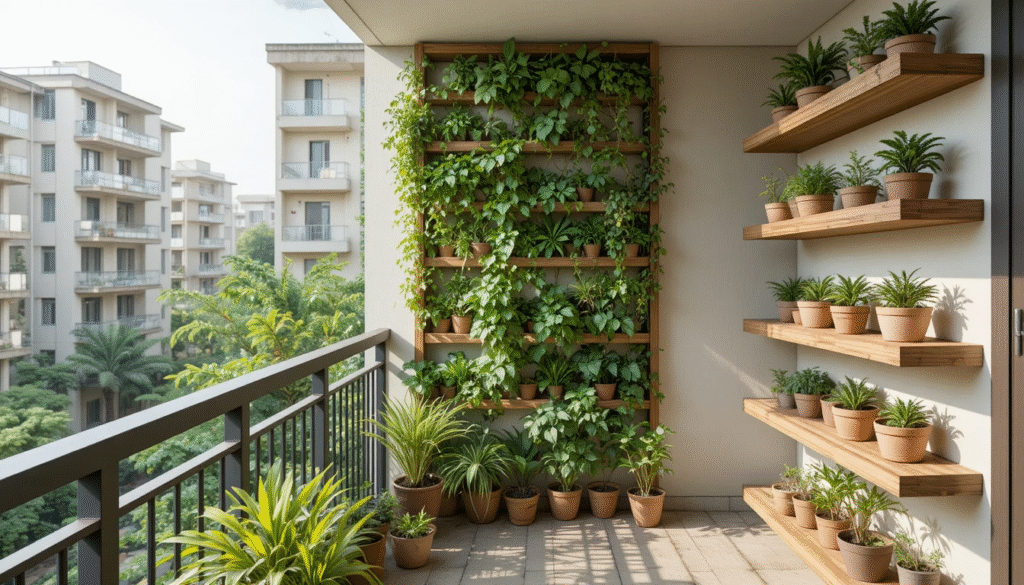 💡 Pro Tip: If your balcony gets harsh sun, install shade nets (50%) or bamboo blinds — they keep plants cool and prevent leaf burn in Indian summers.