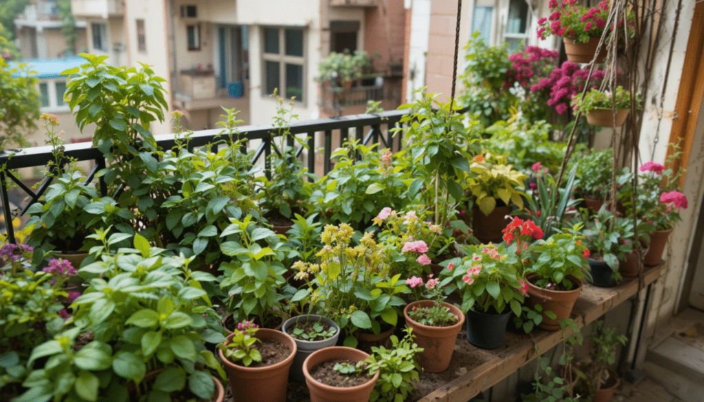 In dense Indian metros — Delhi, Mumbai, Bangalore, Pune — many homes are flats or apartments with limited outdoor space. A balcony might be only 3–6 feet wide, often partially shaded, exposed to wind, dust, and heat. Bulky plants or large garden beds simply aren’t feasible. Small plants that thrive in containers, adapt to varying light, and stay compact are the workable solution.
